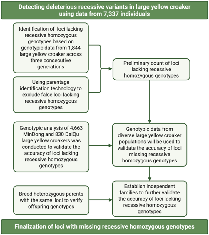 图1 大黄鱼隐性纯合基因型缺失位点鉴定的研究框架